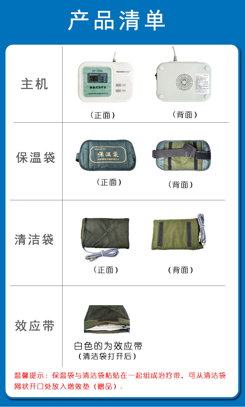 治療帶由效應帶、保溫帶和清潔袋三部分組成。