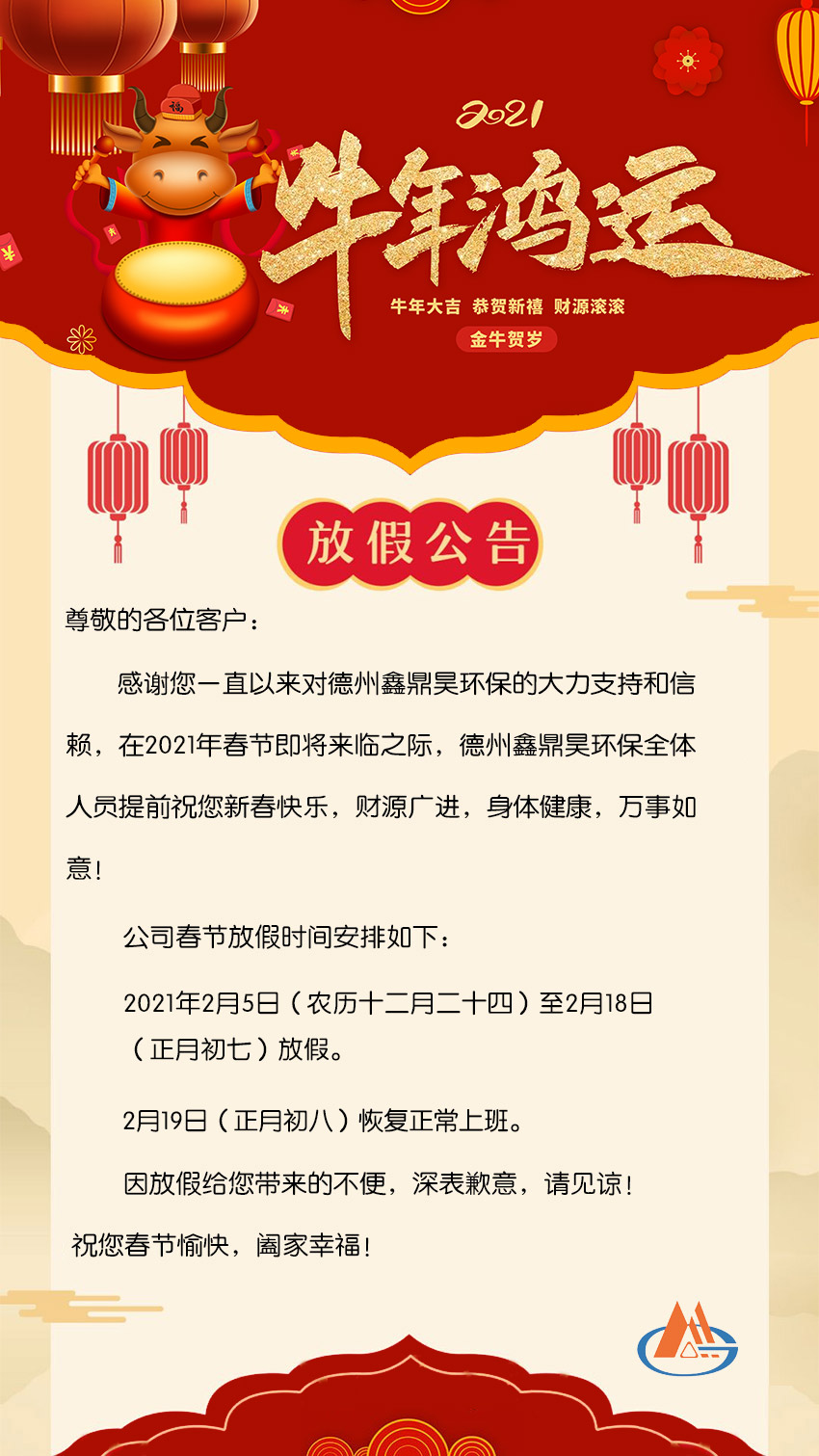 德州鑫鼎昊環(huán)保2021年春節(jié)放假通知